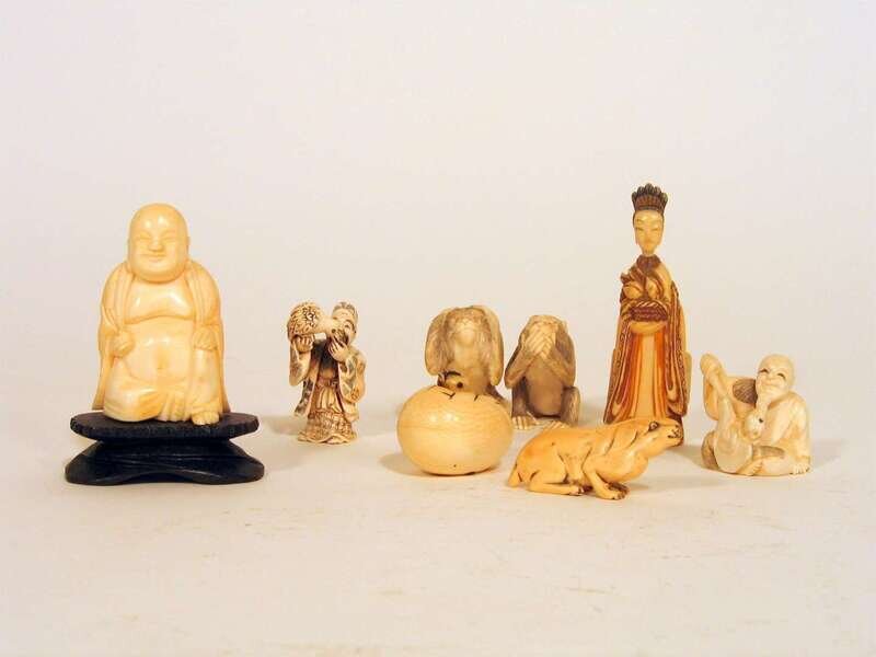 Eight assembled Chinese and Japanese elephant ivory nesuke and models