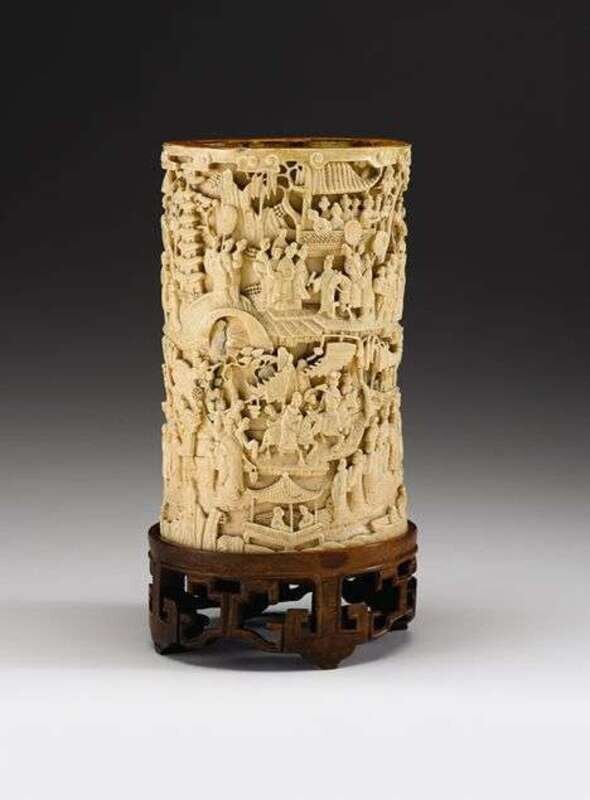 Exceptional and large Chinese elephant ivory brushpot canton, early 19th century