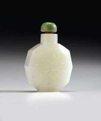 Fine and large Chinese white jade faceted snuff bottle early 19th century