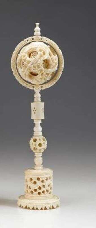 Large Chinese elephant ivory games ball and stand 19/20th century