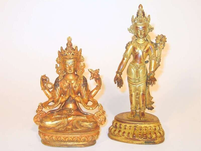 Two Sino-Tibetan gilt bronze figures early 20th century