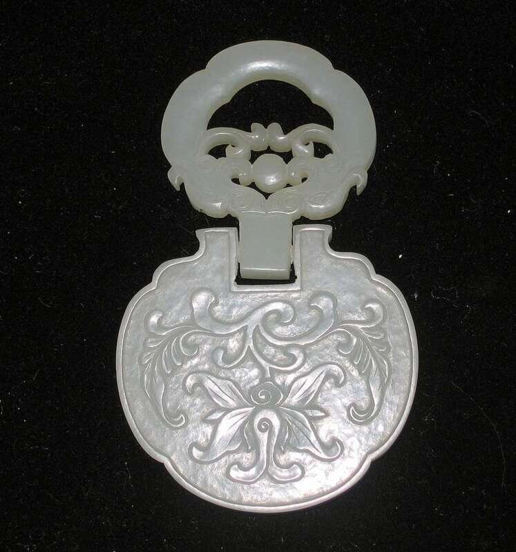 Chinese white/light celadon jade pendant, in export silver case qing dynasty