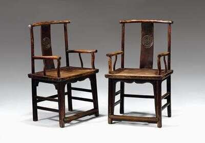 Pair of Chinese mixed wood chairs, and another chair qing dynasty