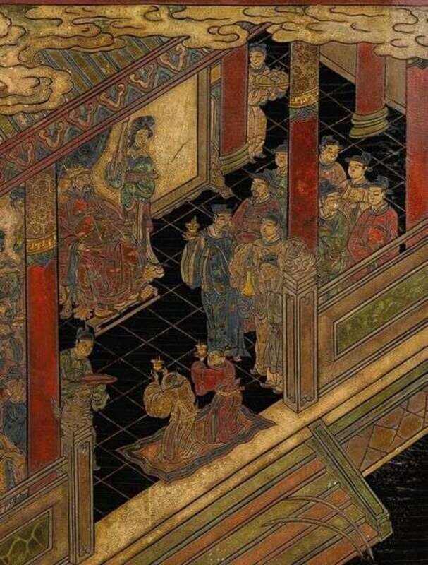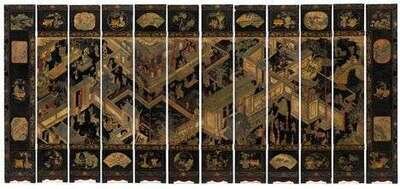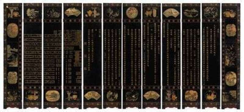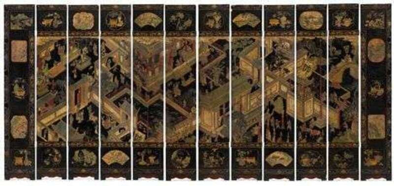 Highly important Chinese twelve panel coromandel screen kangxi period, dated to the 21st year, renxu of the kangxi reign, 1682