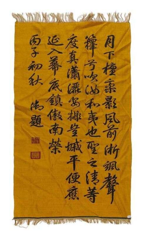 Chinese yellow ground calligraphy kesi panel qianlong seal, 19/20th century