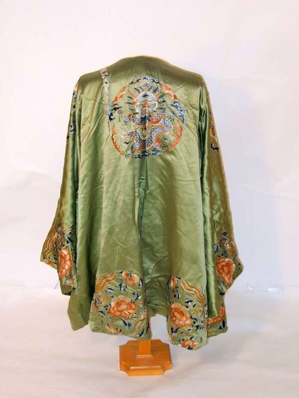 Heavy Chinese green ground embroidery robe late qing dynasty