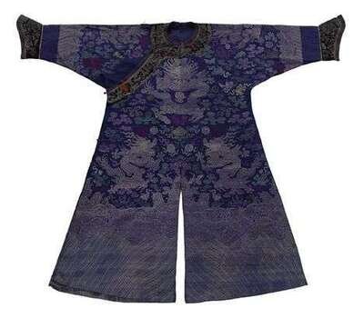 Chinese silver thread and blue ground 'dragon' robe late qing dynasty