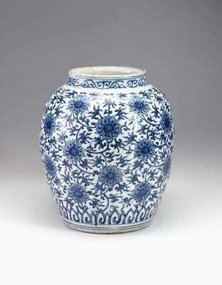 Large Chinese Ming blue and white 'lotus' jar wanli period