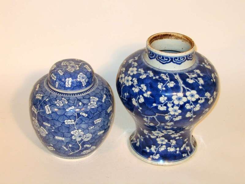 Chinese blue and white hawthorn vase and jar kangxi period and possibly later