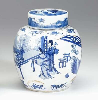 Large Chinese blue and white molded covered jar kangxi period
