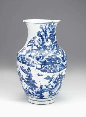 Large and fine Chinese blue and white 'landscape' vase 18th century