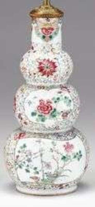 Fine Chinese famille rose triple gourd vase double blue rings, qing dynasty