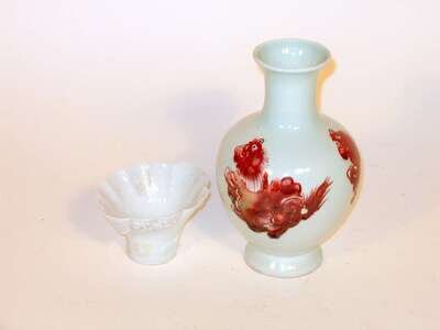 Chinese blanc-de-chine libation cup and copper red underglazed vase 18th century & 20th century