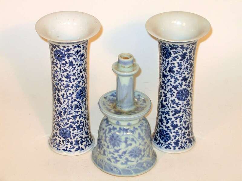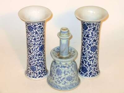 Pair of Chinese blue and white beaker vases, and pricket qing dynasty