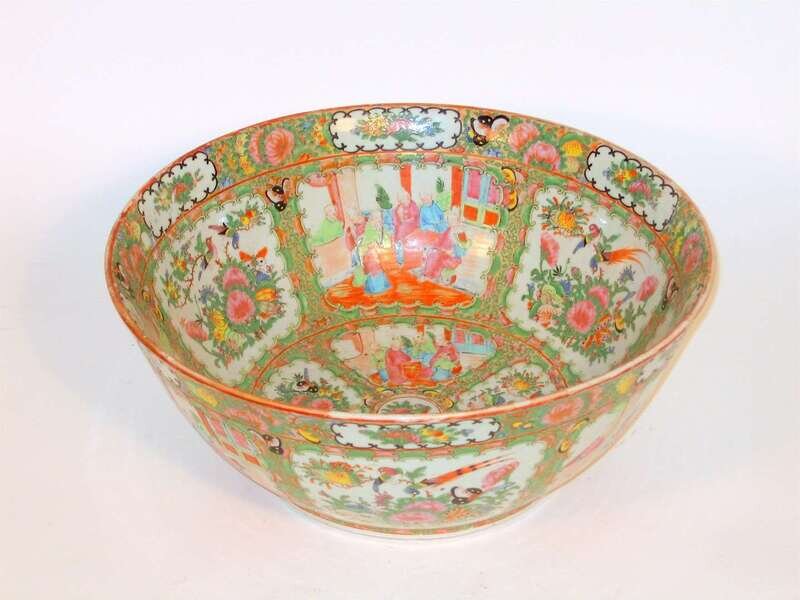 Of deep U-shape form, painted in the typical medallion palette, raised on a circular foot.