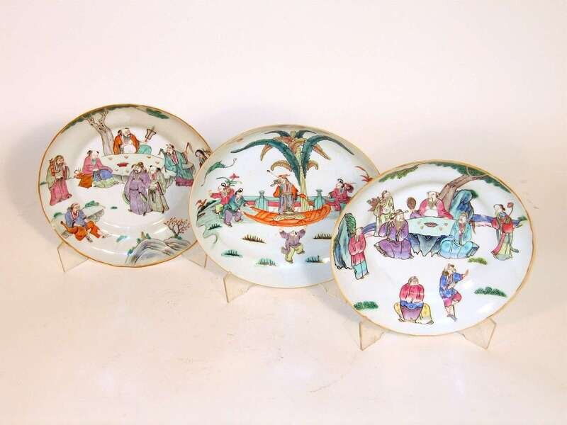 Three Chinese export famille rose plates 19th century