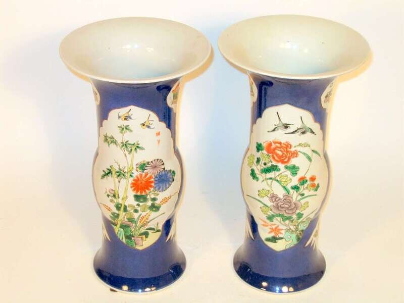 Pair of Chinese famille rose and powder blue beaker vases late 19th century