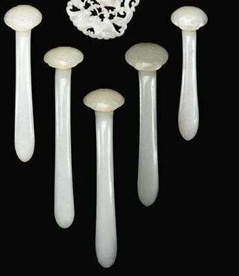 Six Chinese white and celadon jade 'lingzhi' hair pins mid-late qing dynasty