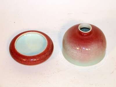 Chinese peach-bloom water-coupe and brushwasher blue kangxi marks, 20th century