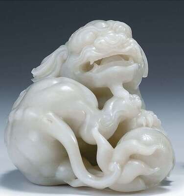 Fine Chinese white-light celadon jade Fu-lion grouping late Qing dynasty