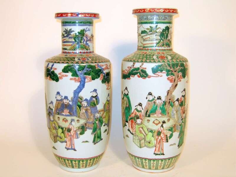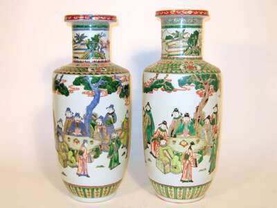 Two Chinese famille verte rouleau vases republic period