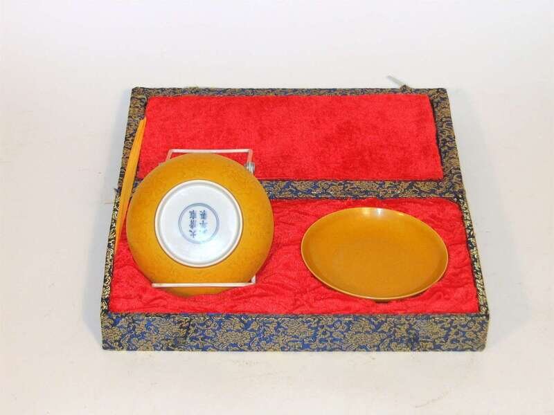 Pair of Chinese yellow glazed saucers yongzheng mark, 20th century