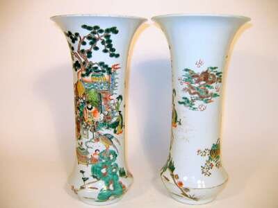 Large pair of Chinese famille rose beaker vases blue kangxi marks, 19/20th century
