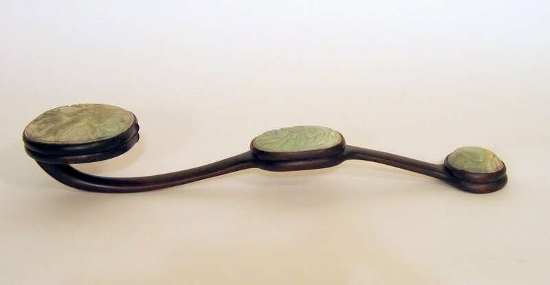 Large Chinese jadeite mounted hardwood ruyi scepter