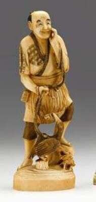 Large Japanese elephant ivory okimono red tablet to base, 19/20th century