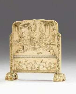 Very fine Japanese elephant ivory table screen late 19th century