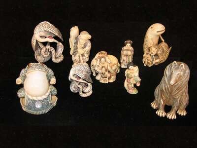 Nine Japanese elephant or mammoth ivory models