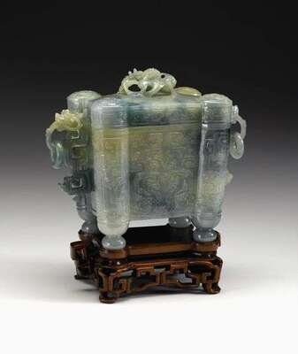 Fine Chinese jadeite archaic covered vessel 18/19th century
