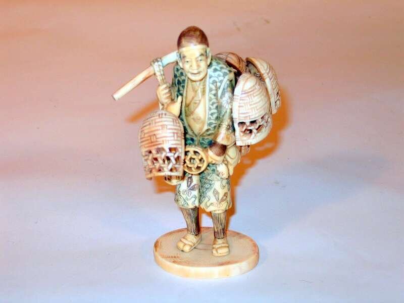 Japanese carved ivory figure of a basket seller late 19th century