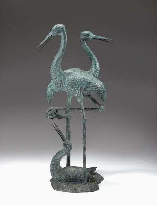 Large Meiji style patinated bronze egret grouping