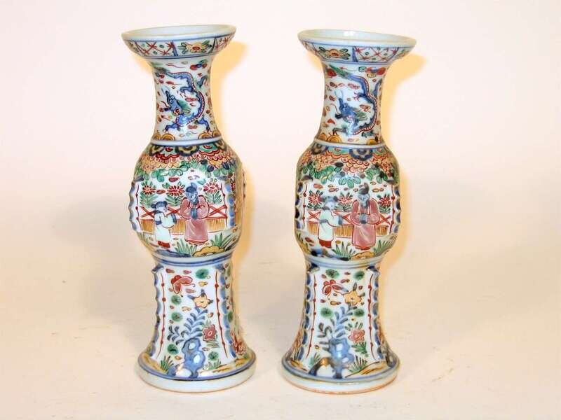 Pair of Japanese Chinese-style wucai beaker vases wanli mark, late 19th century