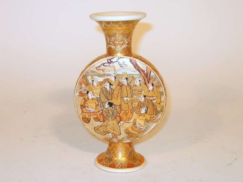 Japanese earthenware satsuma moon-flask signed, early 20th century