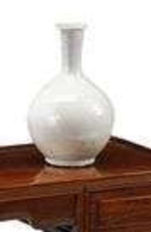 The rimmed slightly flared mouth issues from a slender neck over a circular bulbous body, raised on a small unglazed circular foot.