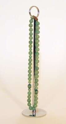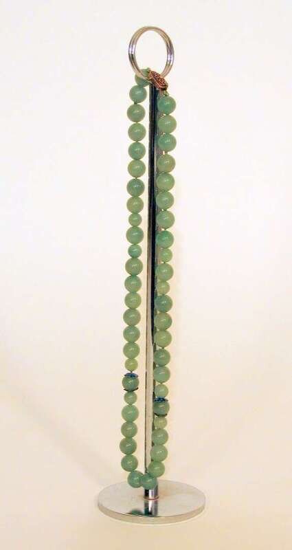 Of forty-eight celadon jadeite beads, two enamel plates and a silver filigree clasp.