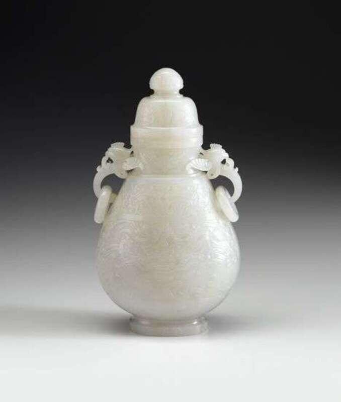 Large Chinese white jade twin-handle covered vase 20th century