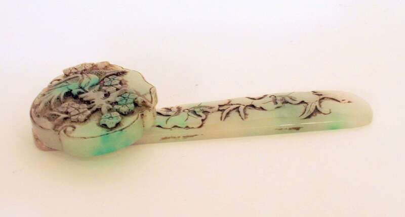 Of lingzhi form, oval head carved in low relief to show pine blossoms, tapering steam.