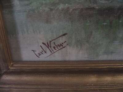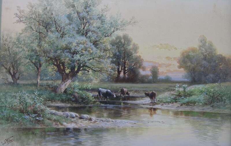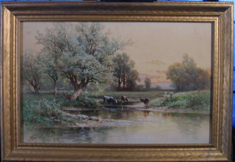 CARL WEBER (AMERICAN 1850-1921) COWS WATERING