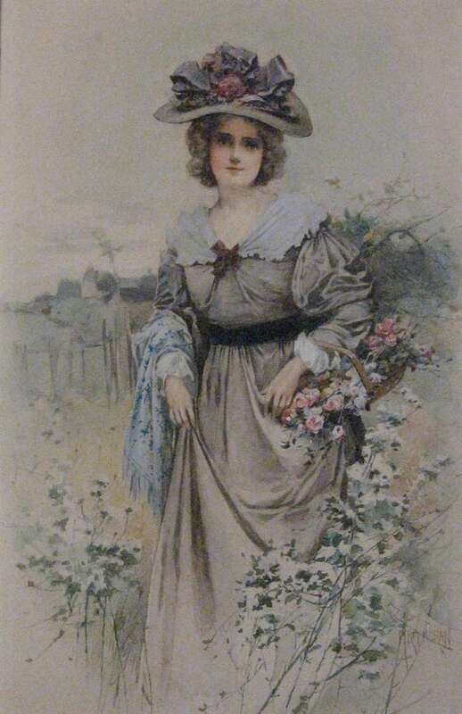 PERCY MORAN (AMERICAN 1862-1935) LADY WITH FLOWERS