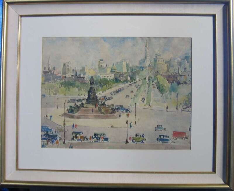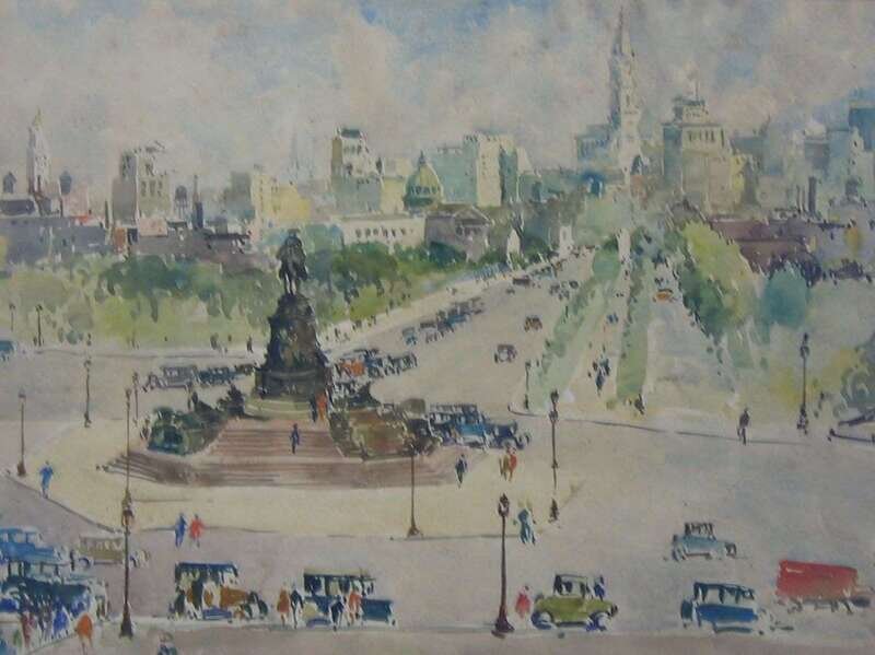 JOHN J. DULL (AMERICAN 1859-1949) BEN FRANKLIN PARKWAY FROM THE PHILADELPHIA ART MUSEUM