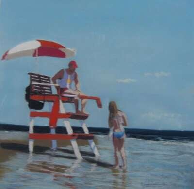 JOSEPH F. SWEENEY (AMERICAN B. 1957) BEACH SCENE WITH LIFEGUARD