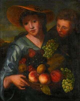P:VEEN (CONTINENTAL SCHOOL, CIRCA 1700) WOMAN AND CHILD WITH BASKET OF FRUIT