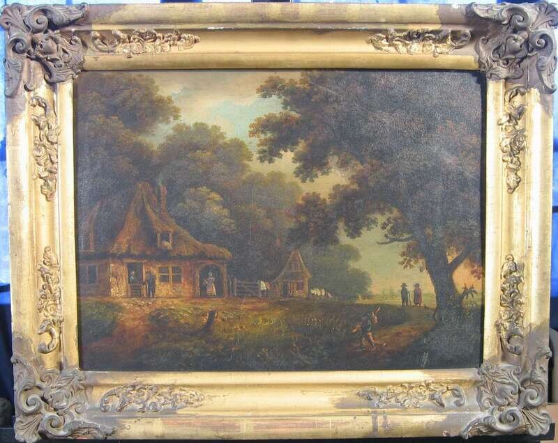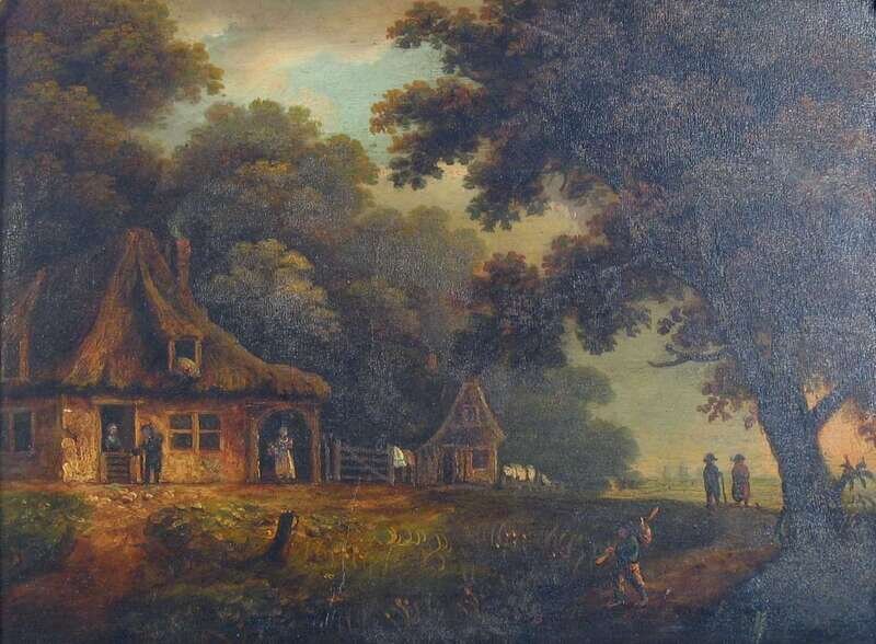 BRITISH SCHOOL (17TH CENTURY) LANDSCAPE WITH FIGURES AND CABIN