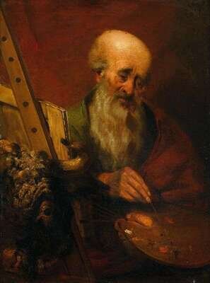 FLEMISH SCHOOL (17TH-18TH CENTURY) SAINT LUKE PAINTING THE MADONNA , WITH HIS ATTRIBUTE THE OX