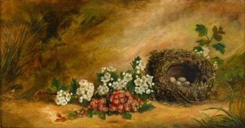 GEORGE CRUIKSHANK (BRITISH 1792-1878) STILL LIFE OF DOGWOOD AND BIRD'S NEST