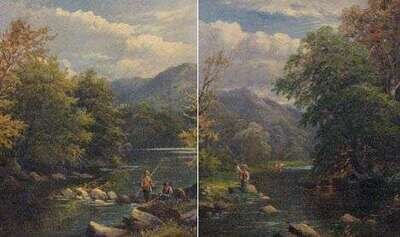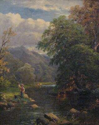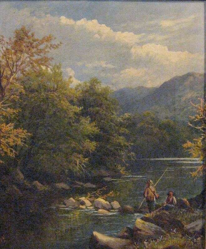 GEORGE B. YARNOLD (BRITISH 19TH CENTURY)PAIR OF LANDSCAPES FISHERMAN BY A STREAM