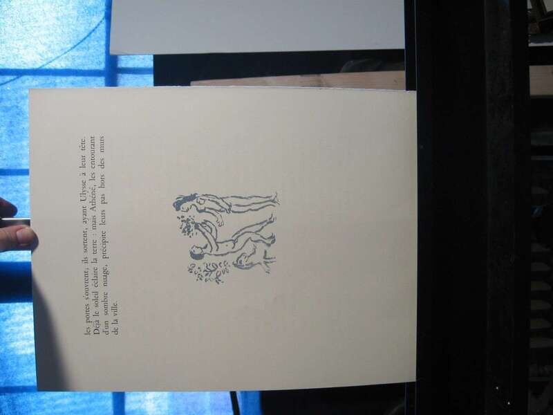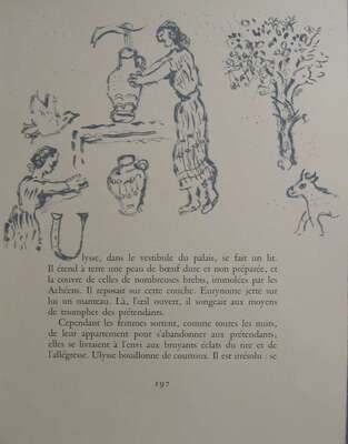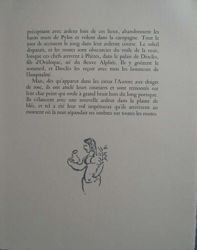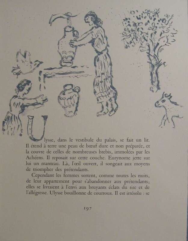 MARC CHAGALL (RUSSIAN/FRENCH 1887-1985) FIVE PAGES WITH TEXT ON ARCHES FROM "L'ODYSSÉE"